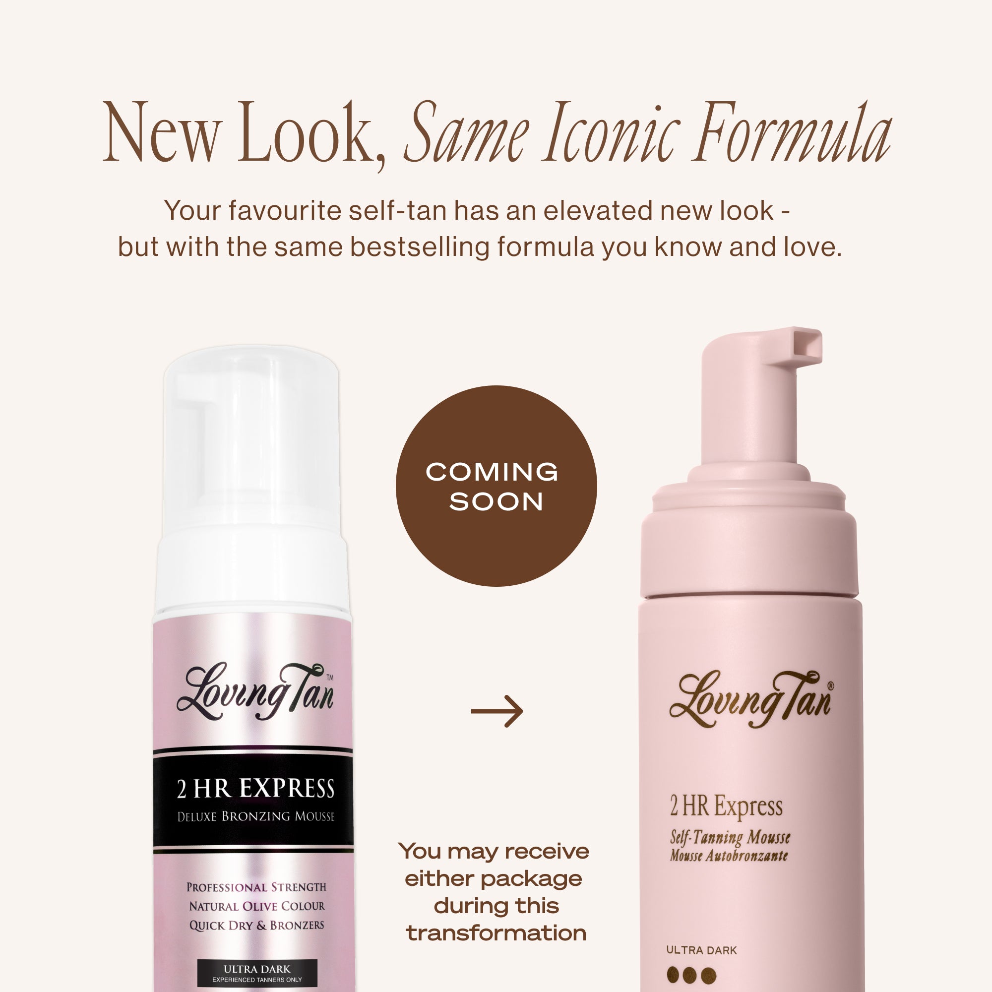 The only difference between the 2 HR Express Mousse and the Deluxe Bronzing Mousse is the rinse-off time. The Deluxe Bronzing Mousse needs to be rinsed off after six to eight hours, while the 2 HR Express Mousse can be rinsed off in just two hours.