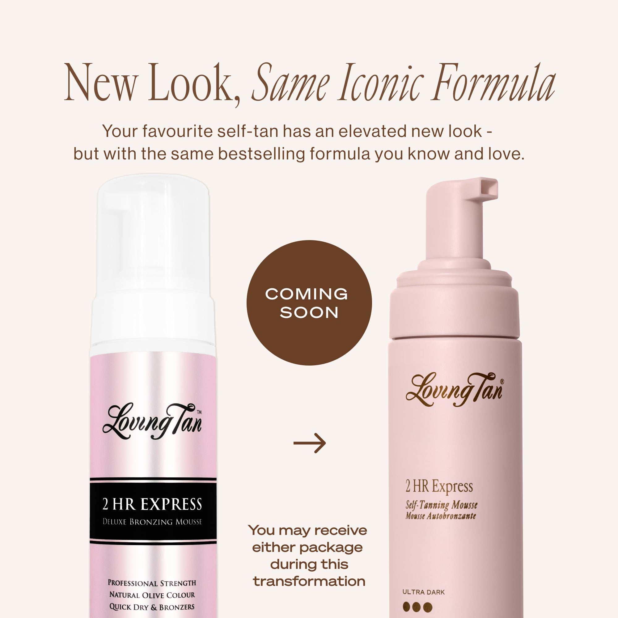 The only difference between the 2 HR Express Mousse and the Deluxe Bronzing Mousse is the rinse-off time. The Deluxe Bronzing Mousse needs to be rinsed off after six to eight hours, while the 2 HR Express Mousse can be rinsed off in just two hours.