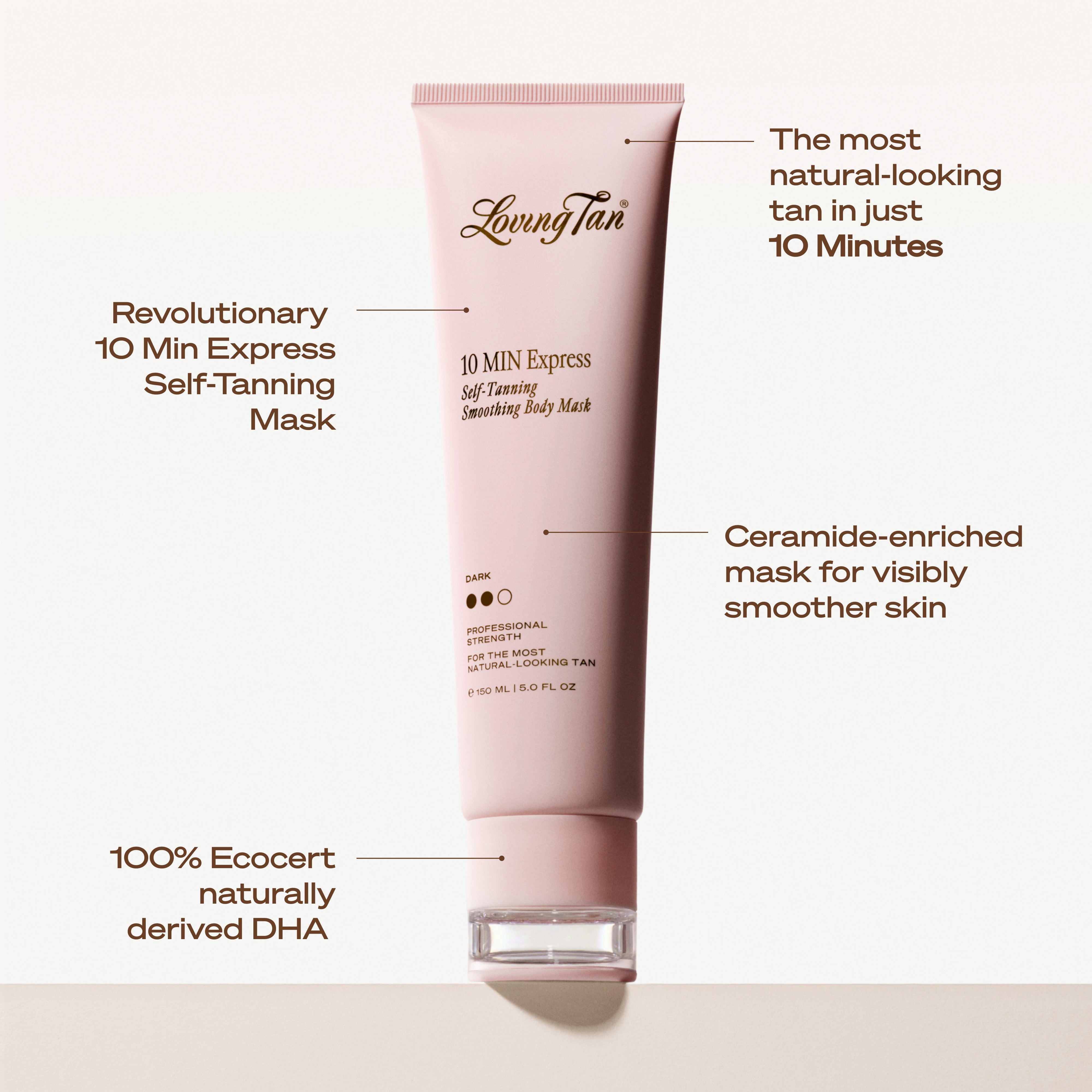 Loving Tan 10 MIN Express Self-Tanning Smoothing Body Mask delivers our fastest-ever, iconic natural-looking tan—flawless, streak-free, smoothing, and ready to rinse in just 10 minutes.